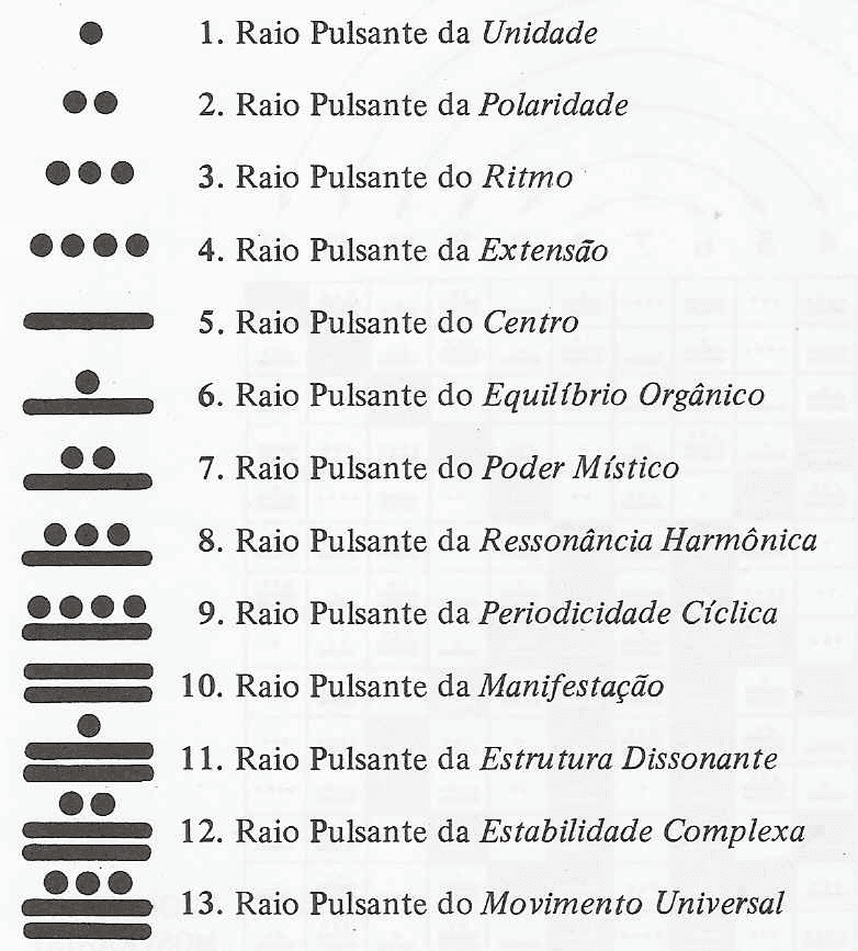 treze números são raios pulsantes, os vinte Signos são possibilidades num espectro de freqü.ncia que